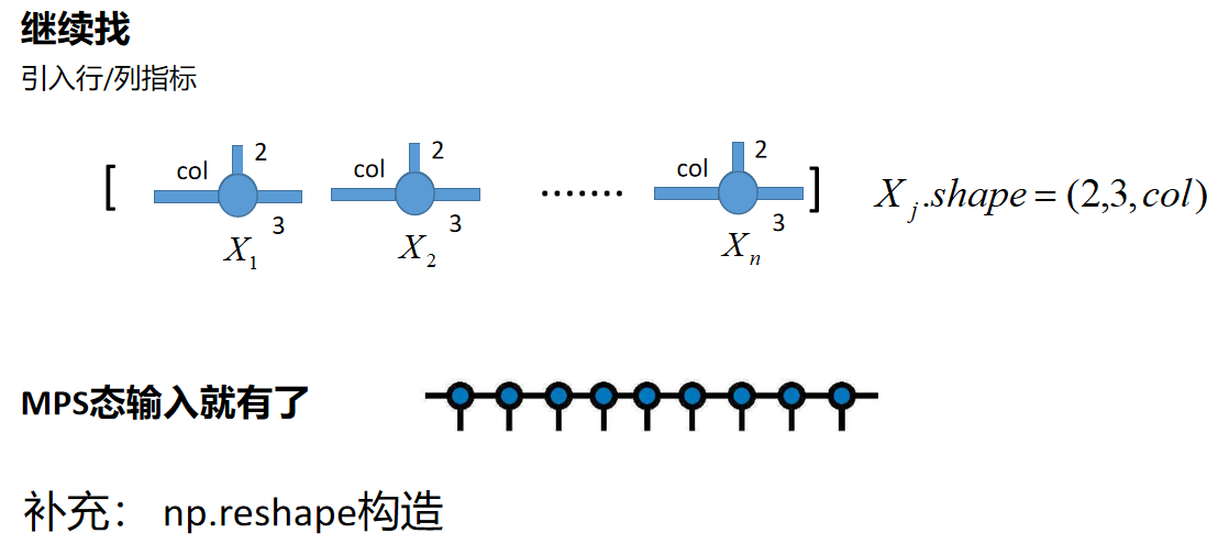 而MPS的关键在于,我们在不知道指数复杂的量子态系数是什么,也不需要TT分解,而是直接**假设基态具有MPS的形式,直接处理MPS中的局域张量,**从而绕过了指数墙的问题。