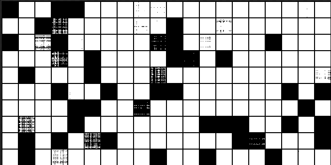 下面步入正题,由于效果,我在GenPU模型中避开了高斯白噪声的初始化,而仅让它们满足取值在0-1之间。于是在pytorch中出现张量收缩的结果不在0-1之间的问题,就导致激活函数会将该结果激活到1或0附近,就会看到如下的空白格,无论迭代多少次都是这样,因为判别器失效了。